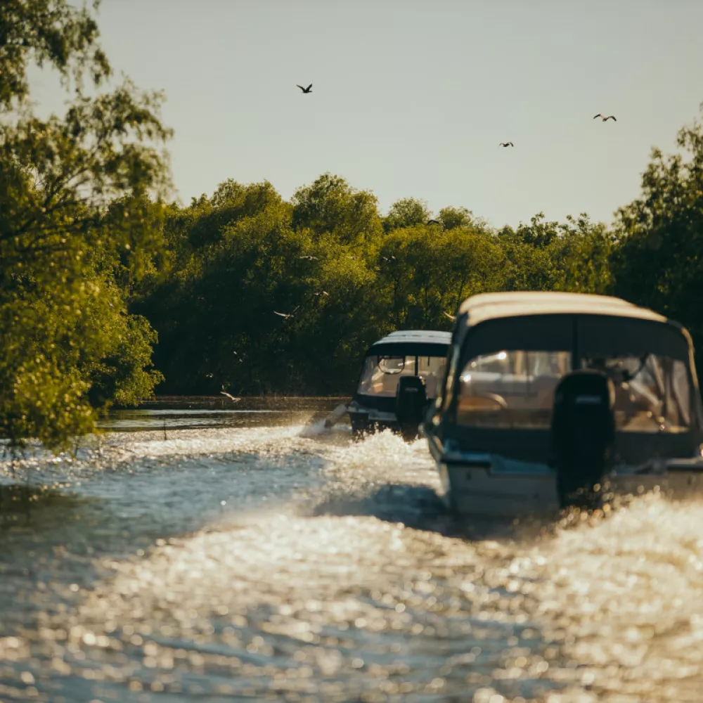 Vom naviga pe Brațul Tulcea, explorând trasee spectaculoase printre canale, lacuri și brațele Dunării: Sulina și Sfântu Gheorghe. Pe parcurs, ghidul nostru îți va oferi informații despre peisajele unice și fauna bogată a Deltei Dunării.