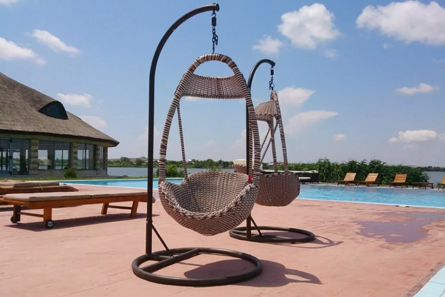 Prosop si sezlong la piscina exterioara (in