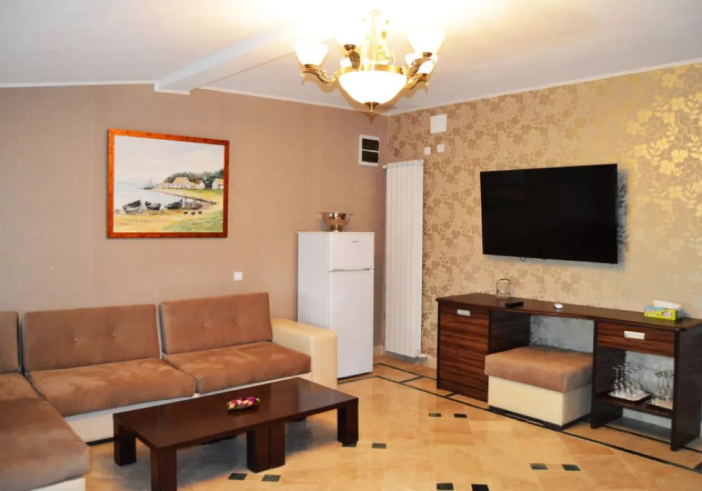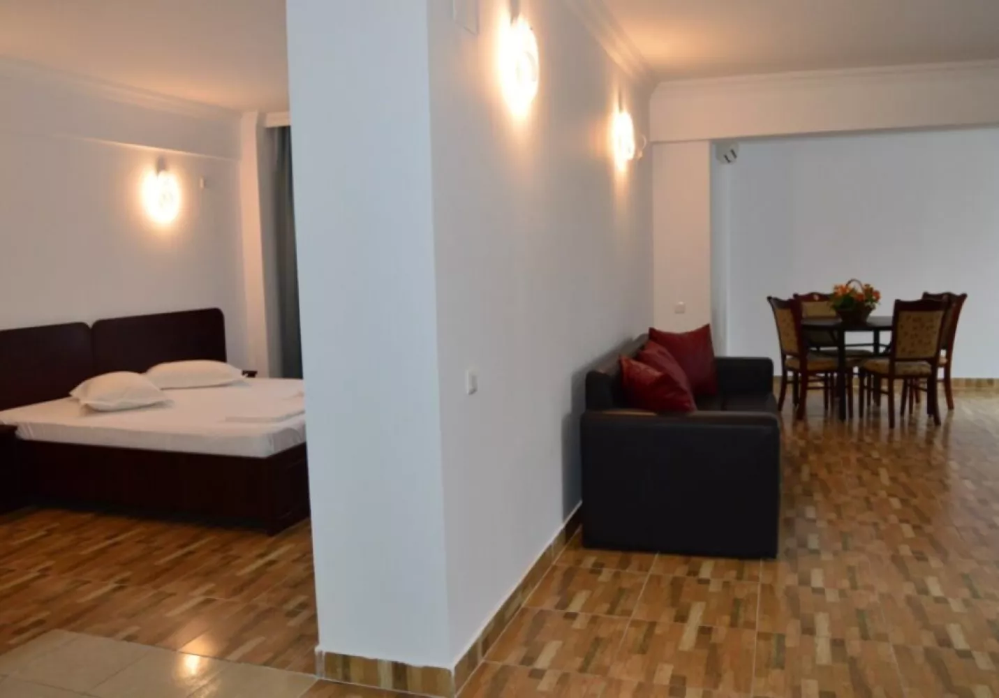 camere, dormitor cu pat king size si living cu canapea extensibila