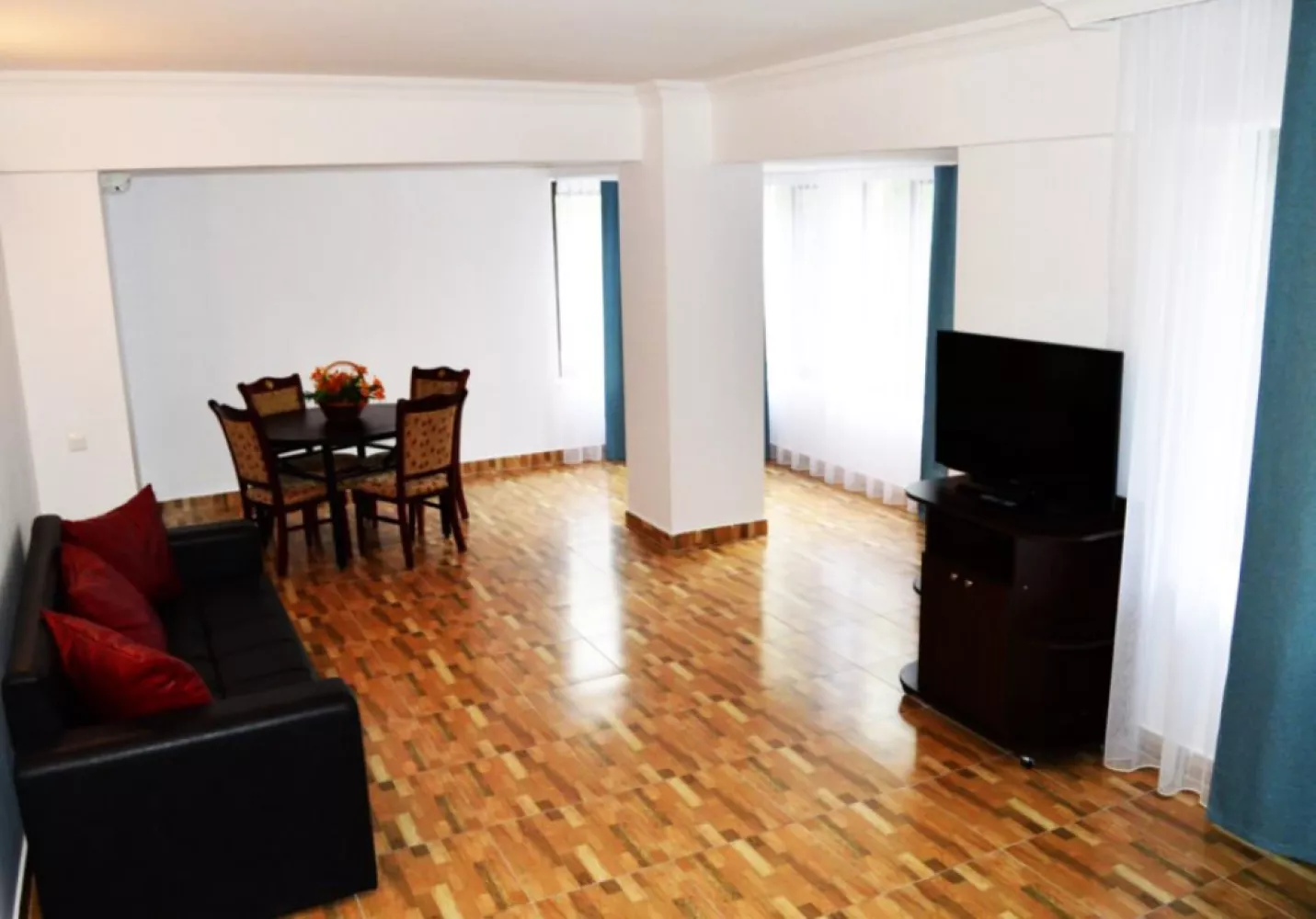 sau 2 paturi twin si living cu canapea extensibila, baie si curte exterioara,