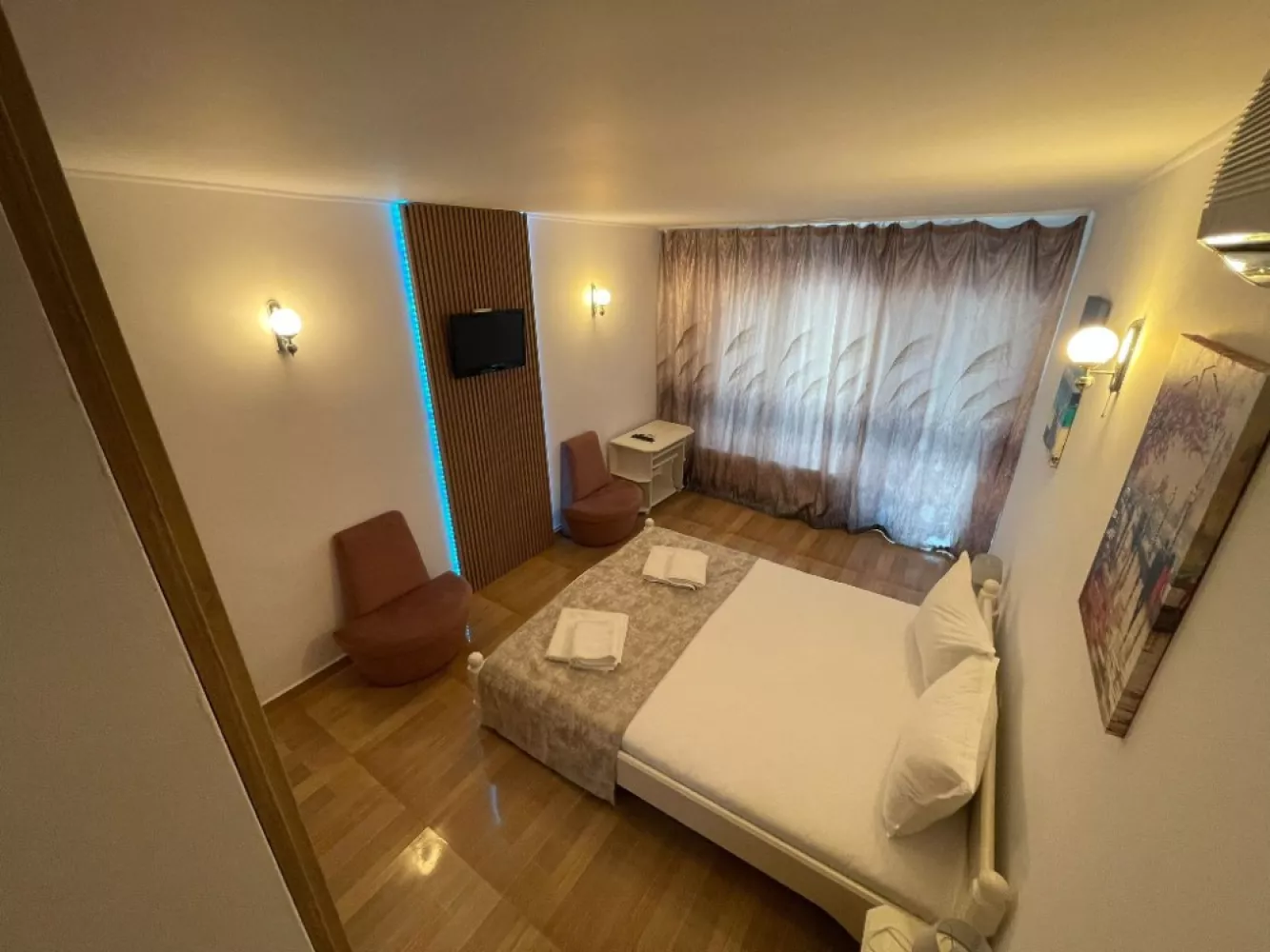 Toate camerele sunt dotate cu bai cu dus, aer conditionat, TV, cablu TV, wireless.